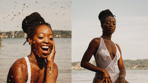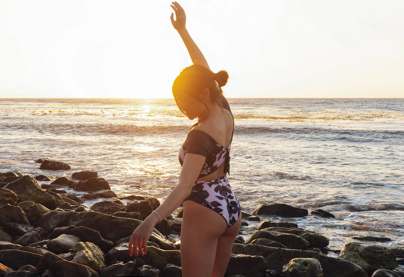 The Midnight Collection features an artisanal print by artist Maria Montiel and is made from the world's first biodegradable polyamide fabric.